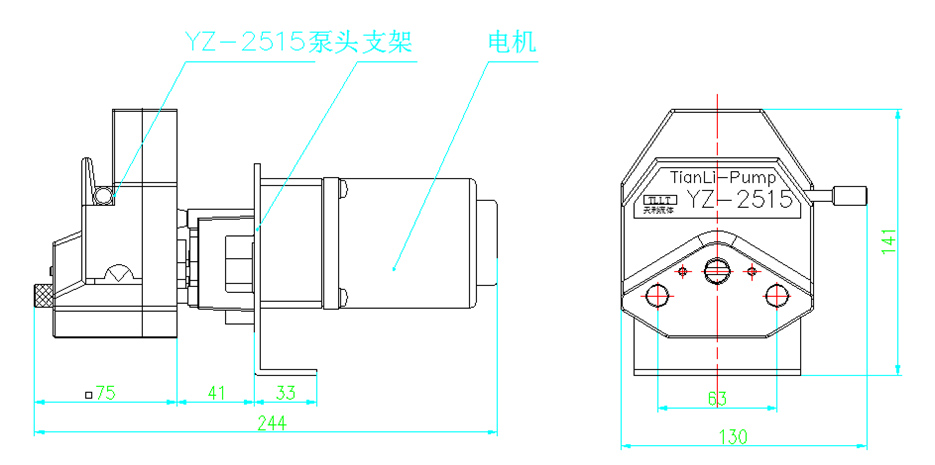 YZ2515泵头和交流减速电机组件尺寸(如下图)